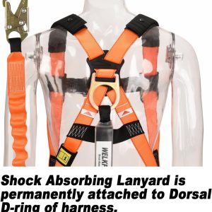 1D-Ring Industrial Fall Protection Safety Harness with 6-Foot Shock Absorber Stretchable Lanyard