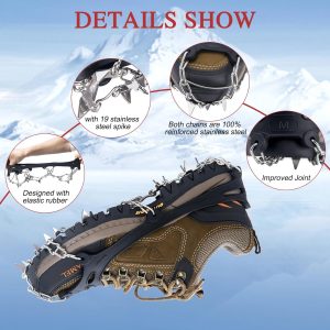 Crampons for Hiking Boots, Shoes, Anti Slip 19 Stainless Steel Crampons Ice Cleats Traction Snow Grips Safe Protect for Women Men Kids Walking Climbing
