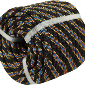 Braided Polyester Arborist Rigging Rope (3/8 inch X 50 feet) High Strength Outdoor Rope for Rock Climbing Hiking Camping Swing, Black/Orange/Blue